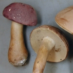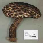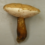 You have a mycorrhizal Mutualist with nearby trees, probably a bolete (various genera including Boletus, many pictured here), or perhaps another miscellaneous fungus such as a Coltricia or Albatrellus.